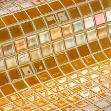 Mosaico vítreo de lujo de la marca Ezarri. Con acabados dorados y texturas sofisticadas, este recubrimiento de alta gama ofrece una estética inigualable y resistencia total a químicos, ideal para proyectos residenciales exclusivos.